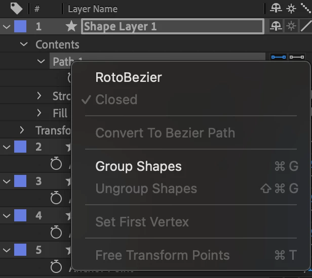 I created a cirlce on a shape layer. The shape is Bezier Path. I cannot de-select 'closed' so that I can delete a vertex and draw my line connected to another. Why.