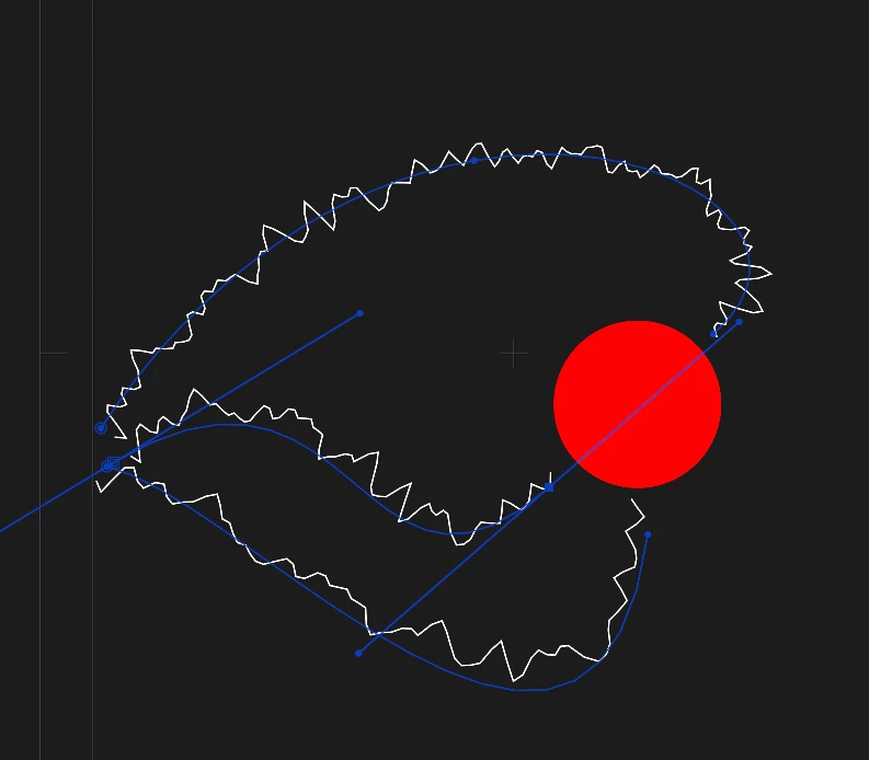 Please see the image attached. I have made the 'tentacles' using paths. I'm tryign t o work out if its possible to add a fall off or some kind of ramping to how wiggle paths distributes the wiggle over the path.