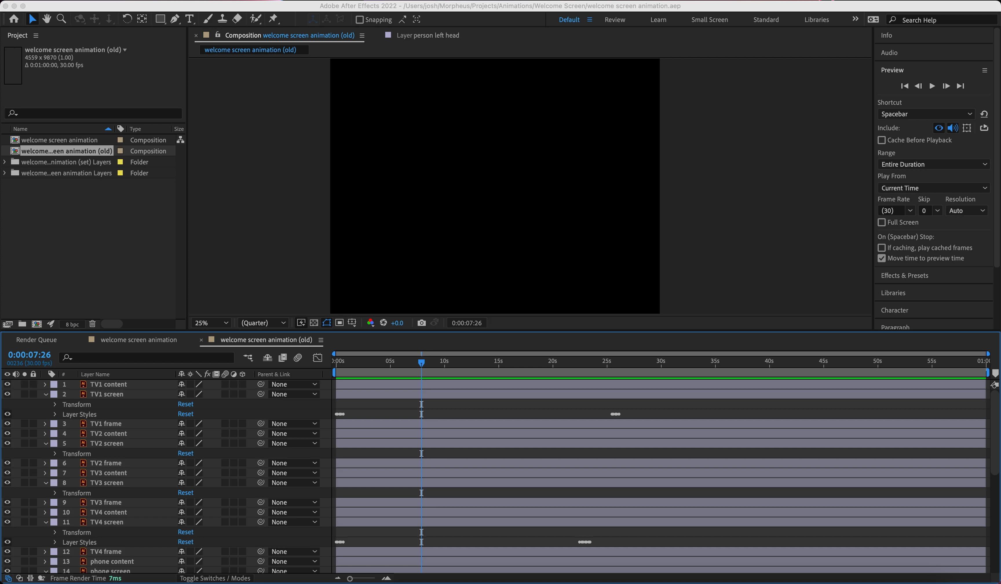 Problem: After Effects composition shows black screen, even though layers are still present.