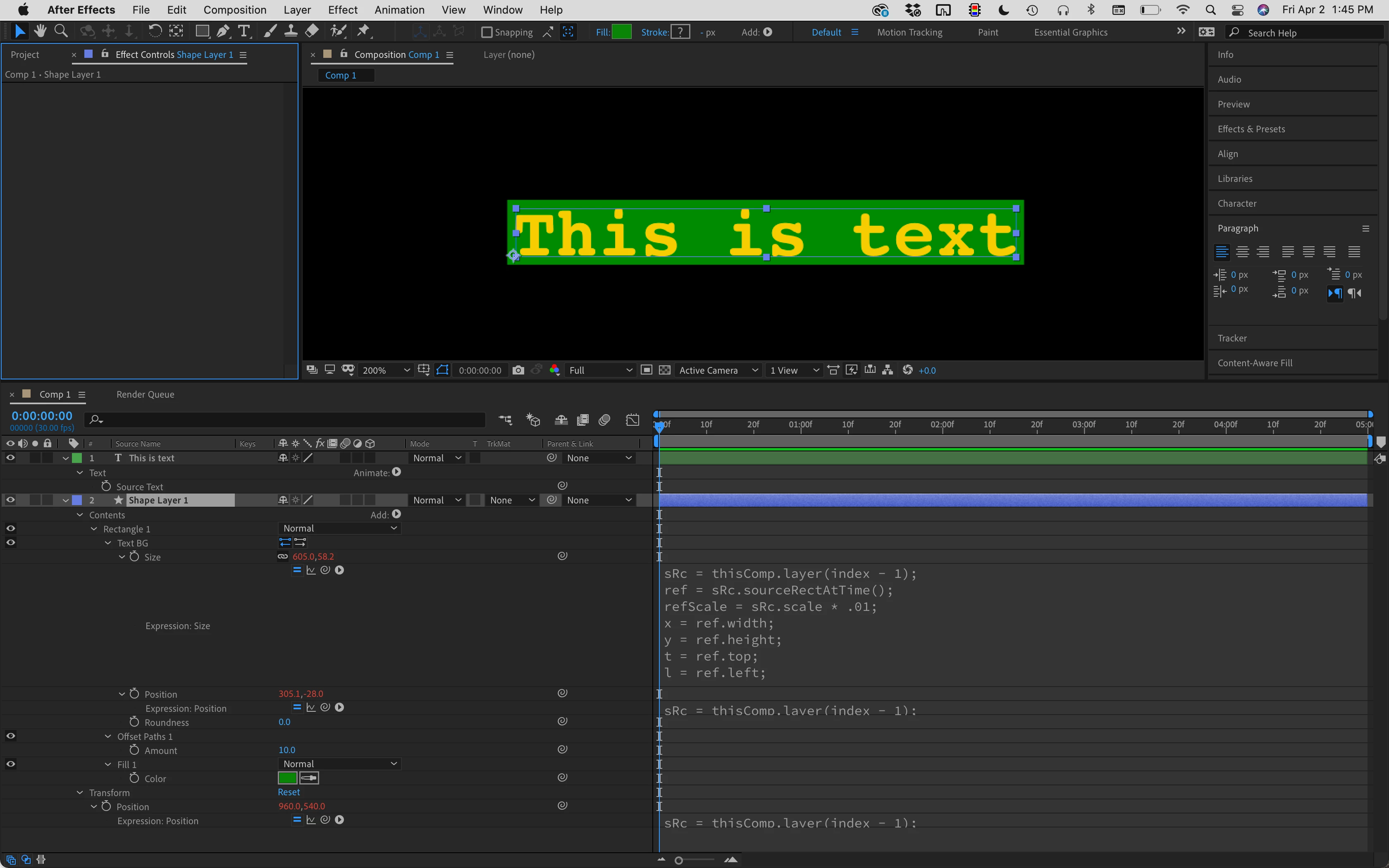 When you are done, save this shape layer as an animation preset and you'll be able to just double click it in the Effects and Presets/Custom Presets panel and add a shape layer to any comp, then drag it below the text layer and everything will work every time.