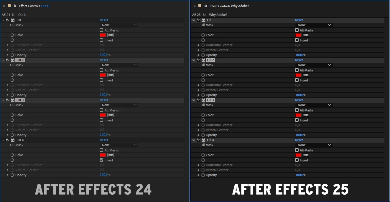 I'm trying to stick with AE 24 until there are some updates on the new Spectrum UI, but it's been months, and these changes make AE 25 horrible to work with. I can't even enjoy new features because it's awful; the visual contrast is gone.
