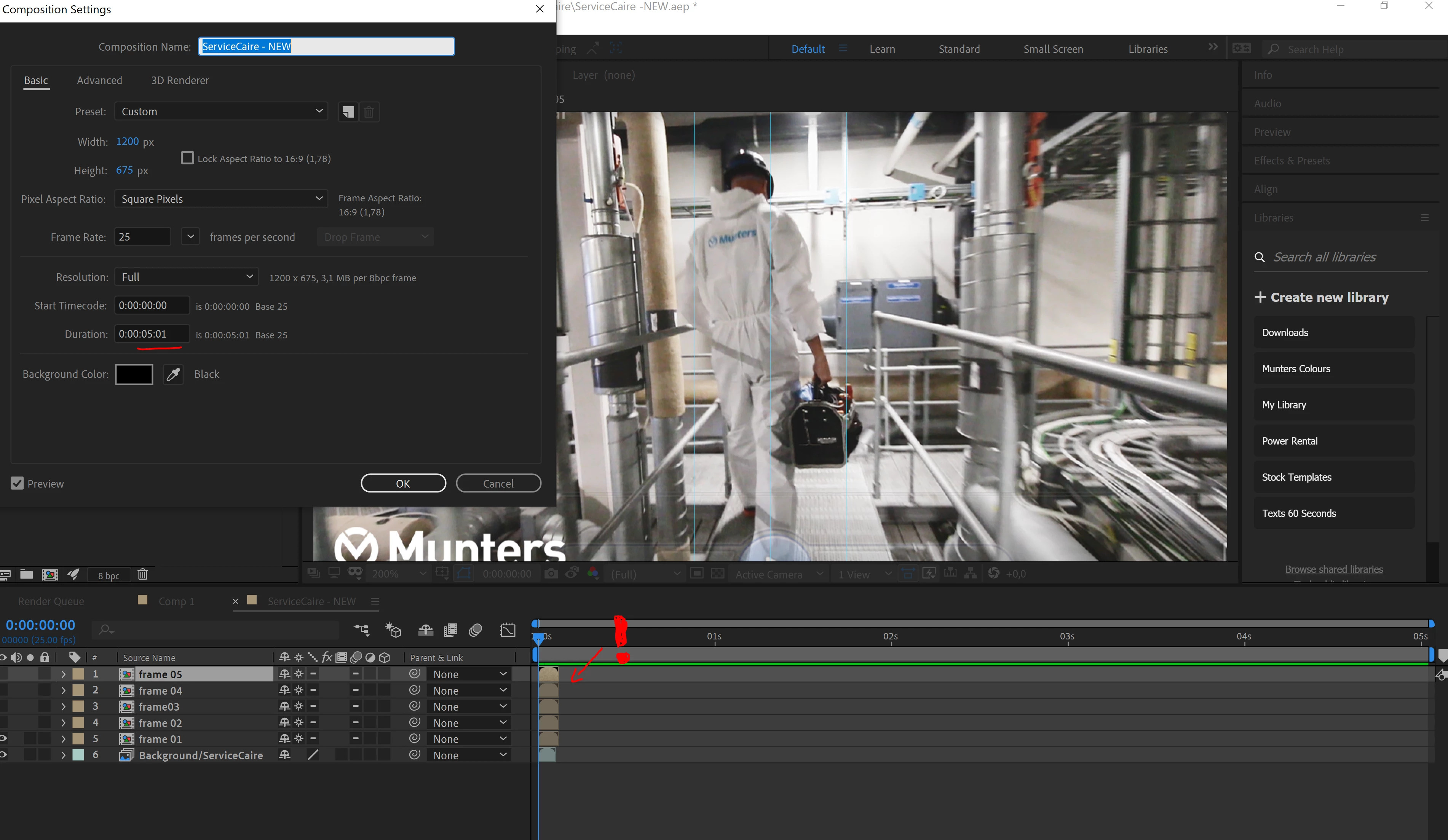 I did a small experiment and set the length to 5 sec. saved the file and then imported the footage, but it still doesn't work. The graphic footage is not being prolonged to fill out the whole 5 sec.