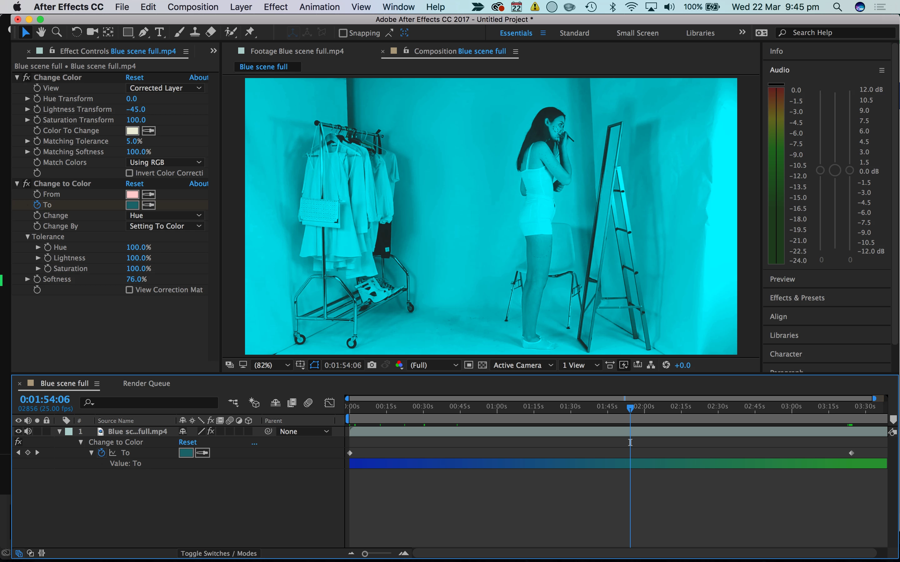 Hi everyone, I am a complete newbie to after effects and i need to change the colour of my film multiple times everytime it changes. When i put in a keyframe for it to start blue, for example, but then the next scene i want the colour to change to green, it changes the colour gradually so that green fades in, when i want it to cut immediately to a different colour when the scene changes. how do i do this?????? the whole film relies on colour changes!!!