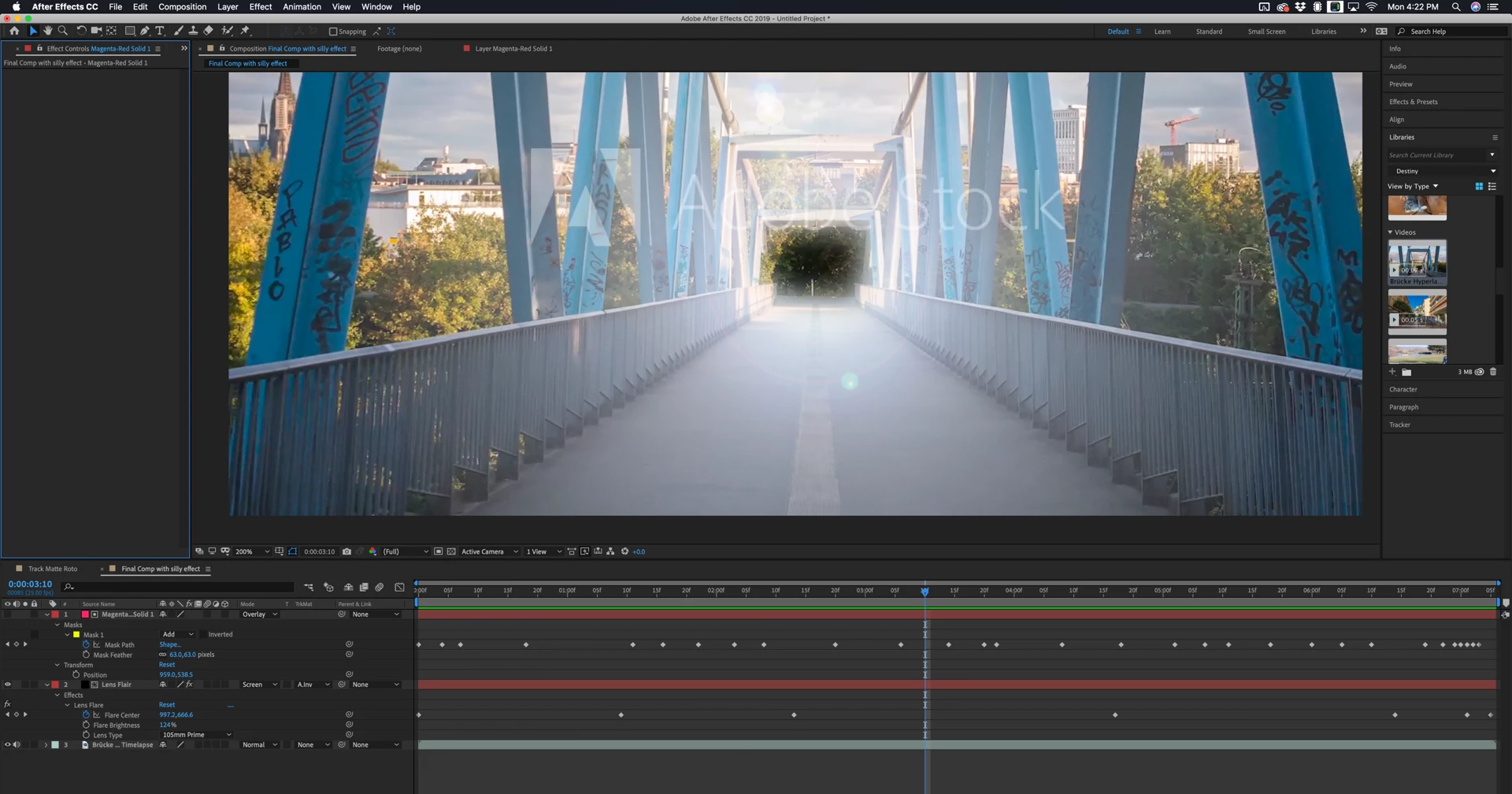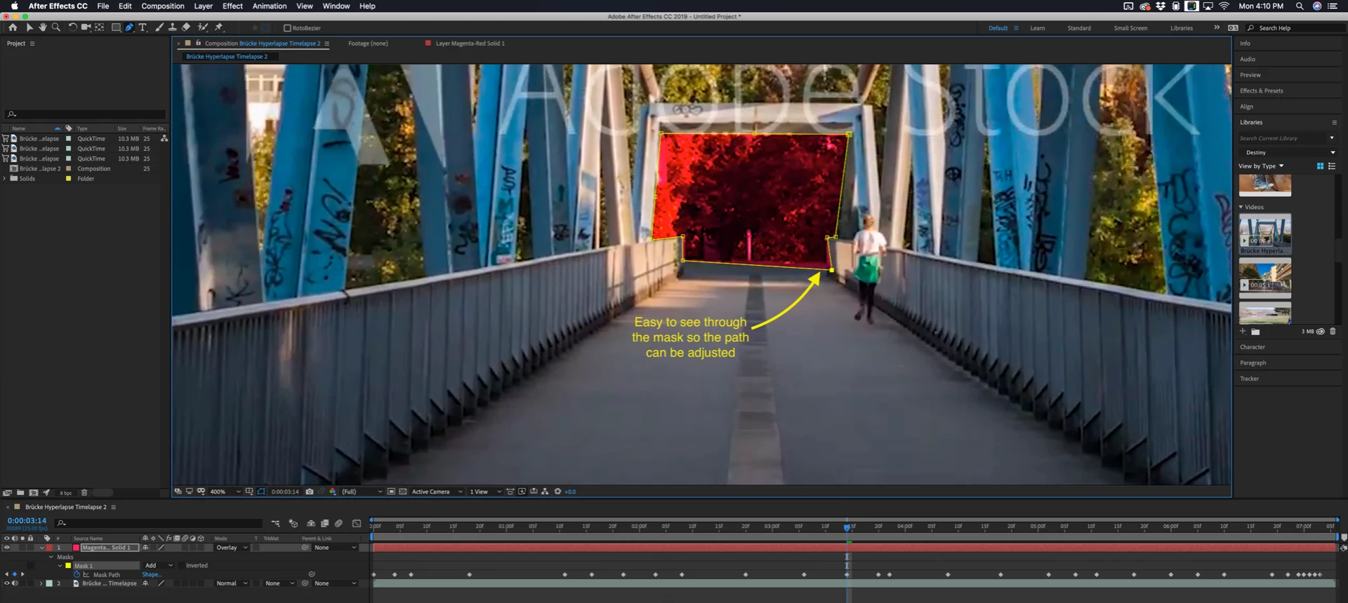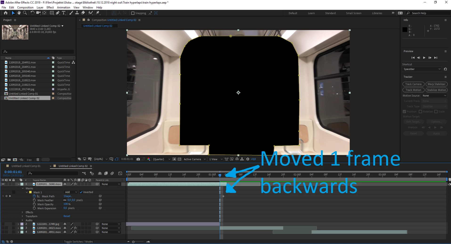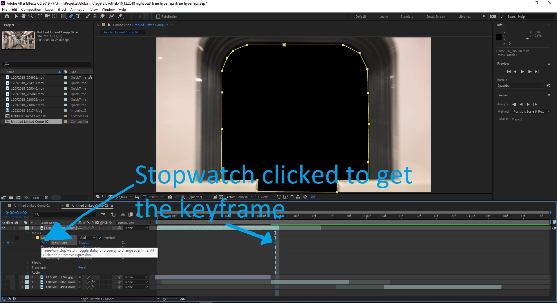 4. I set the keyframe and adjust the mask path so it fits to the new frame