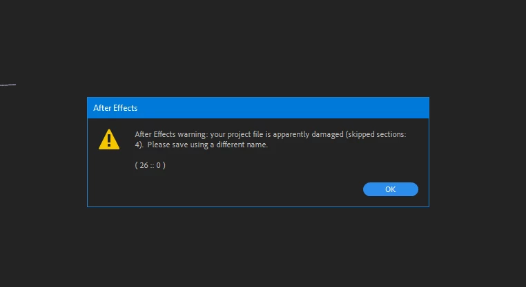 Suddenly AE won't open files and give this error