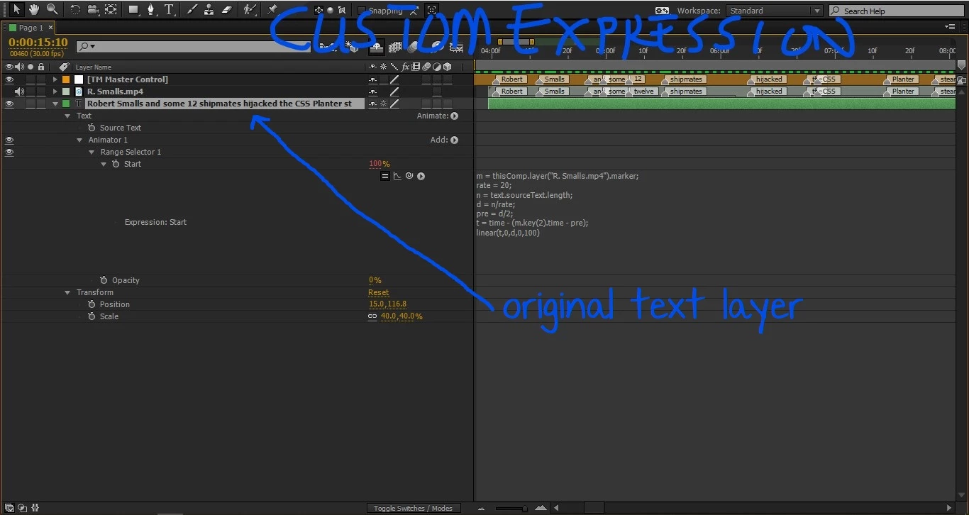 I have this text layer and the voice-over synced with markers.