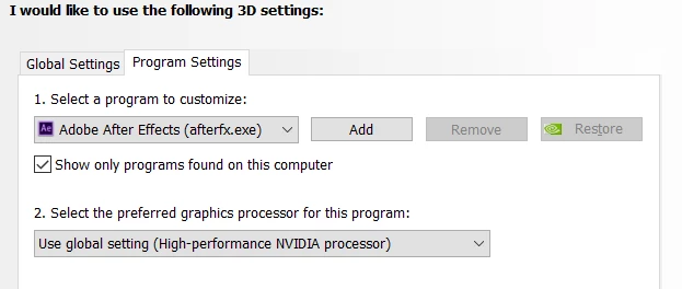 I have the application set to use the preferred Nvidia graphics card in the Nvidia control panel.