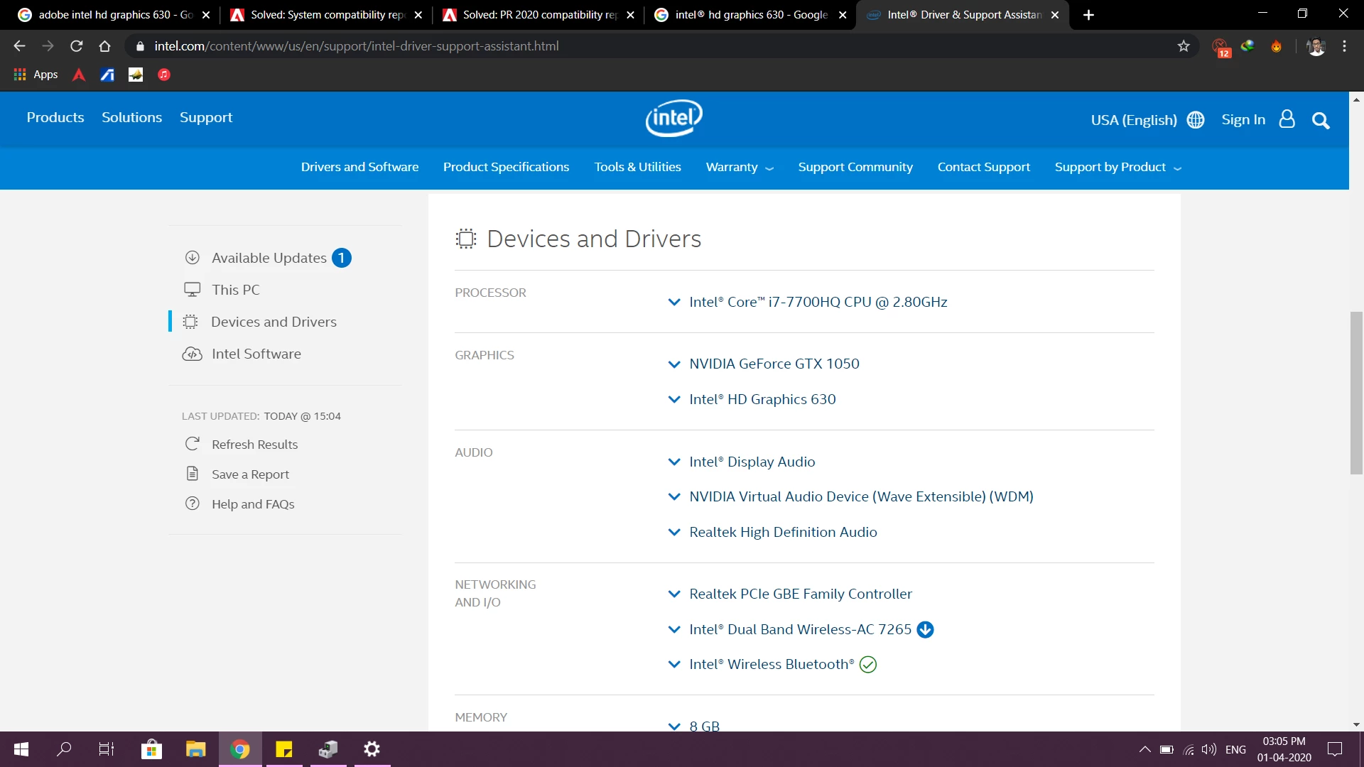 System compatibility report: Unsupported Video Driver Intel UHD graphics 620