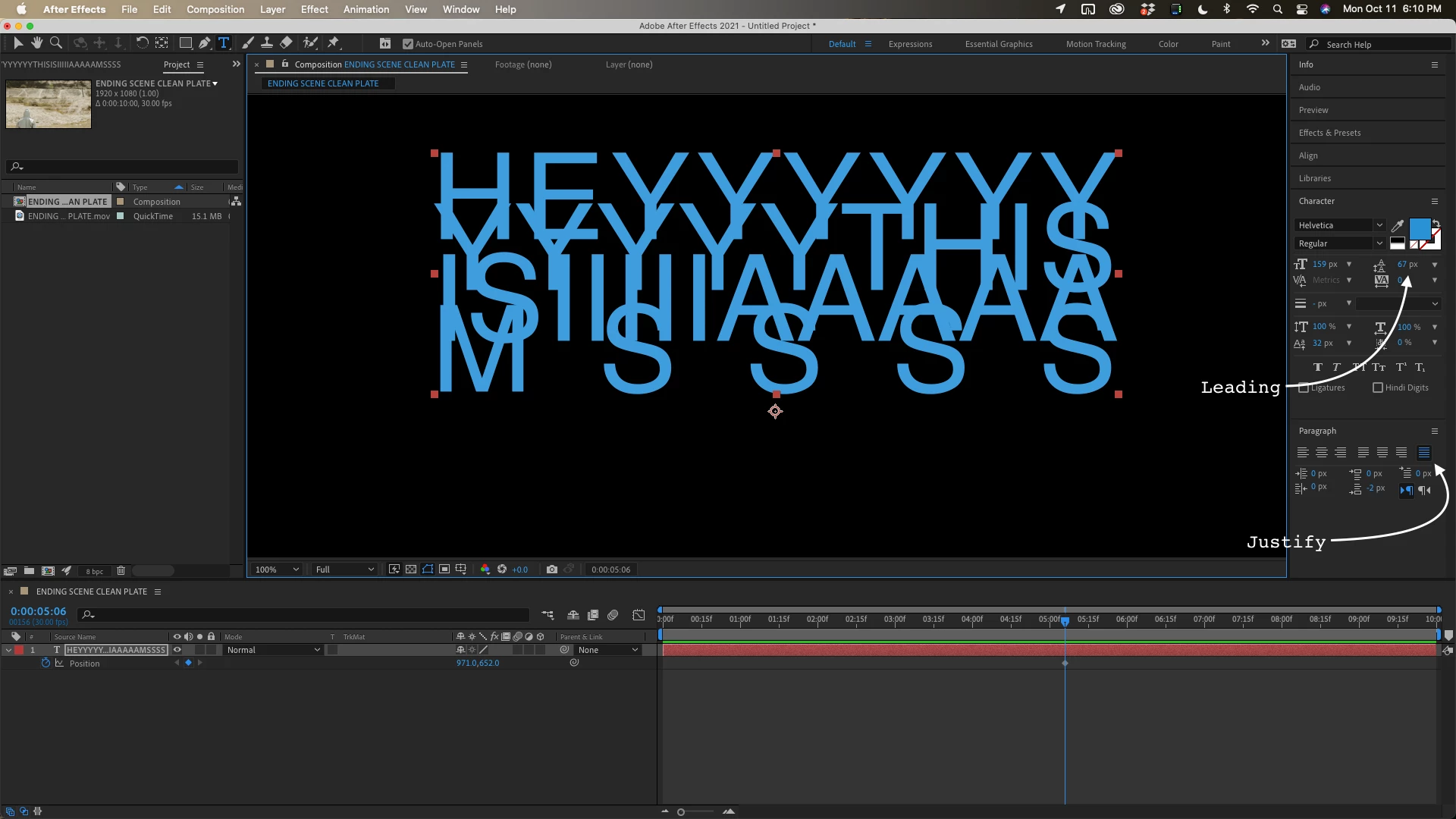 Hi everyone whenever I type text on after effects if I type like 1 - 5 letters they are really spaced out but if i type a lot they all jumble together on one line. My spacing settings are normal tho! Help mee pls