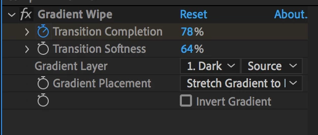 Slow fade on/out in AE is a simple left to right hard-edged fade.