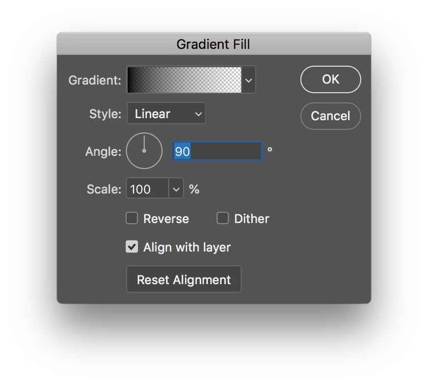 The fade are diagonally from upper left and are feathered.