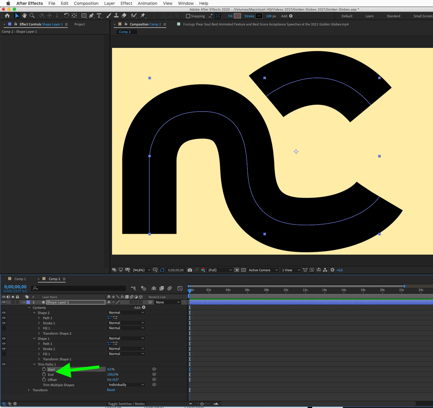 Hi, I'm relatively new to After Effects. I have an 'nc' logo where I've used the Pen Tool to animate the main stroke over a few seconds. However, once the C begins to curve, I want the top curve of the C (the different stroke) to start animating. How do I animate that second stroke? Do I set up a new layer or what do I do? I've used other Adobe apps but I find After Effects a bit difficult. Thanks!