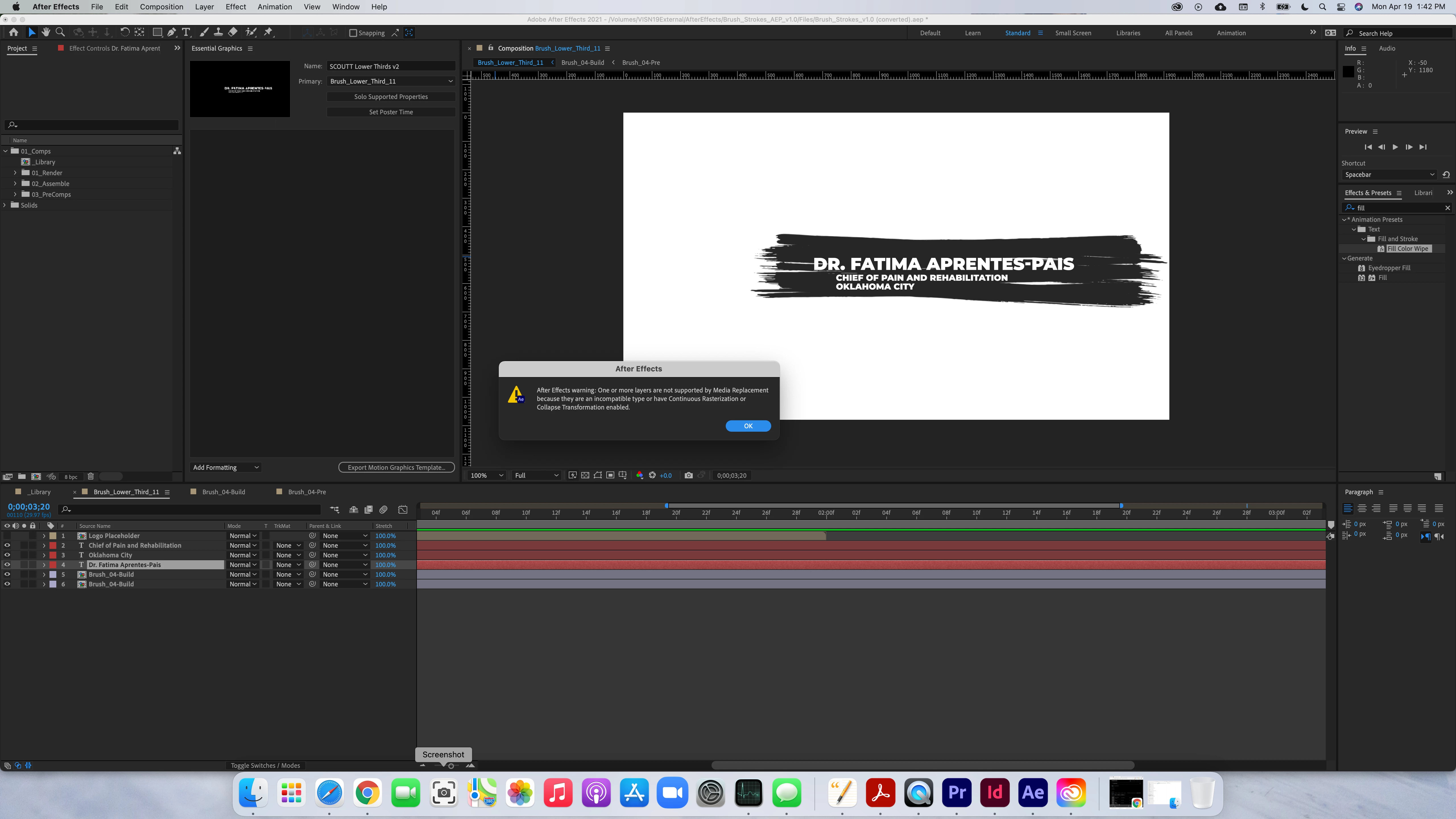 "After Effects warning:  One or more layers are not supported by Media Replacement because they are an incompatible type or have Continuous Rasterization or Collapse Transformation enabled."
