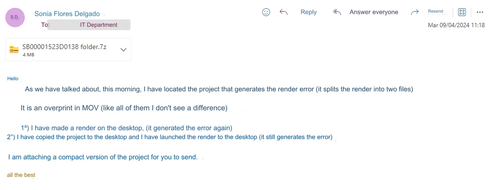 issue with the rendering of the files "SB00001523D0138.MOV" and "SB00001523D0139.MOV" in After Effects "PC 1"