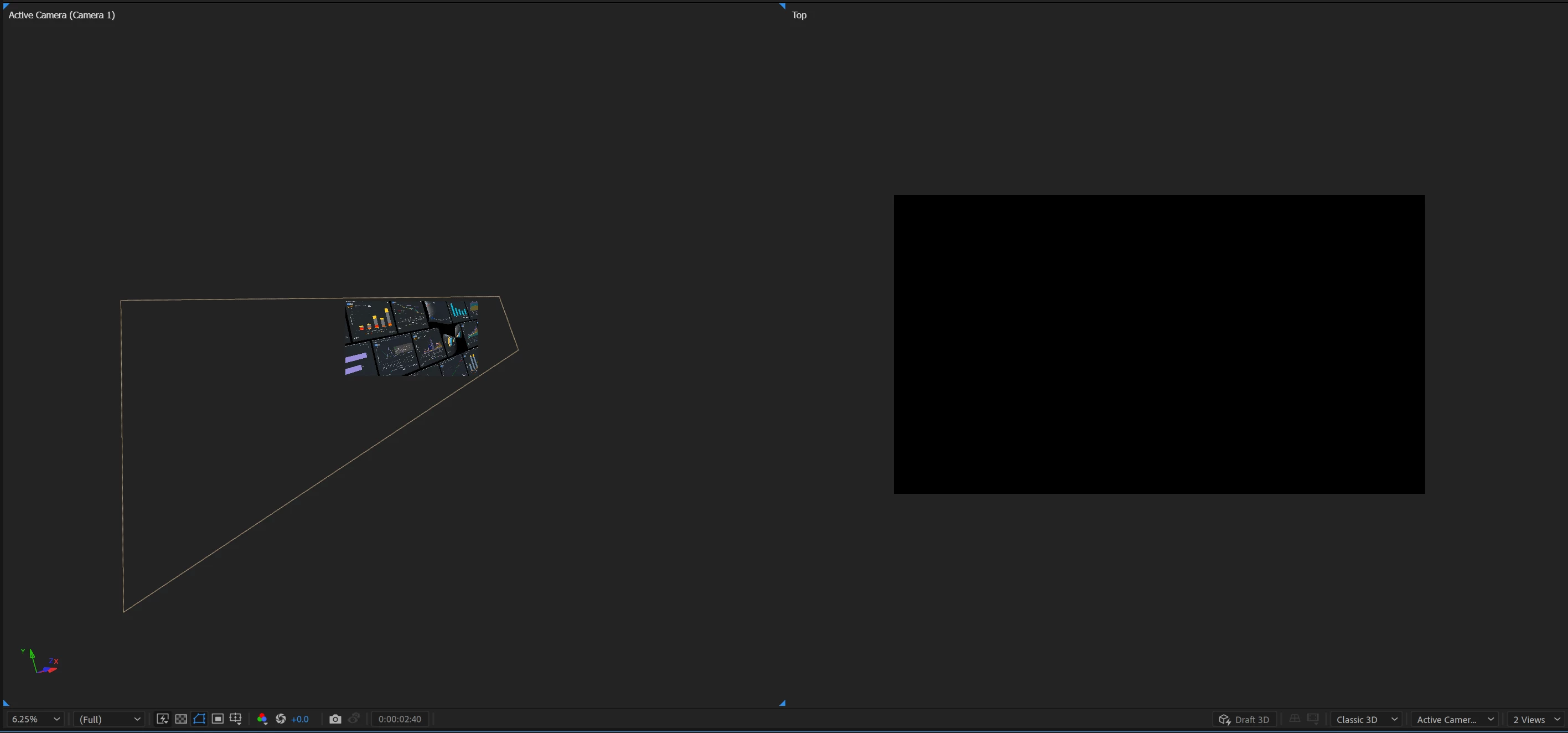 I'm facing a problem in one of projects. I want to see the possition of the camera in a 2 view vieport, but the top view is black. I have tried reseting the camera and turning off hardware acceleration.