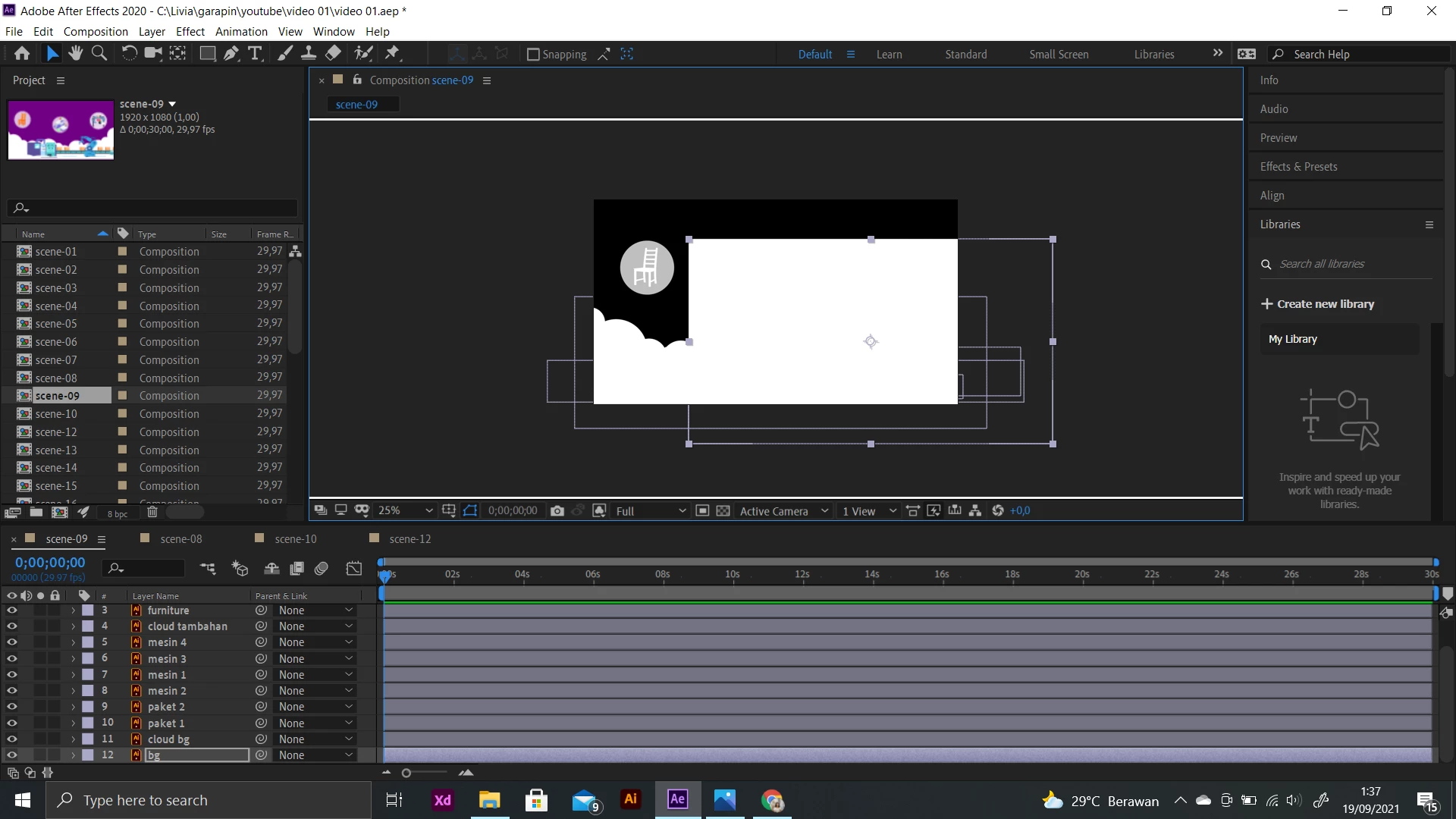 So, I left my laptop for a while to write down in my notebook. When I see my after effect project again, the composition preview suddenly changed. There is this annoying white box, which turns out to be my background. It looks like all my layers turn into black and white. I'm a beginner in after effects and I might have accidentally click something and I don't know what to do. By the way, all my unedited composition turns like this.