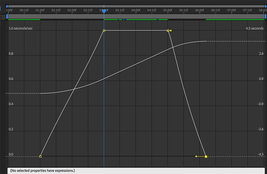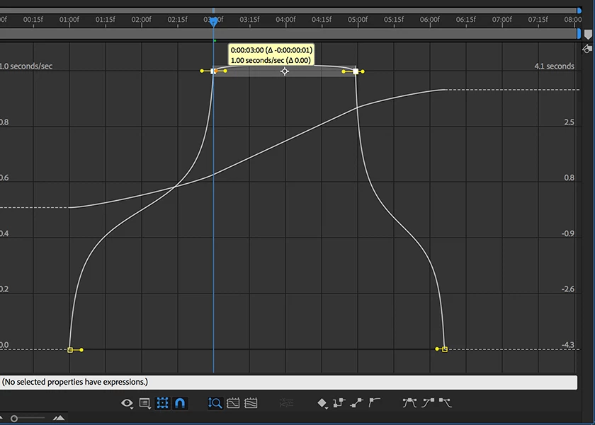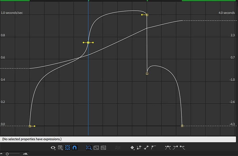 You can then change back to the selection tool and grab the handles on the bottom by grabbing the handles and moving them to the center while watching the top of the speed curve to make sure you don't put a spike in it. You end up with something that looks like this:
