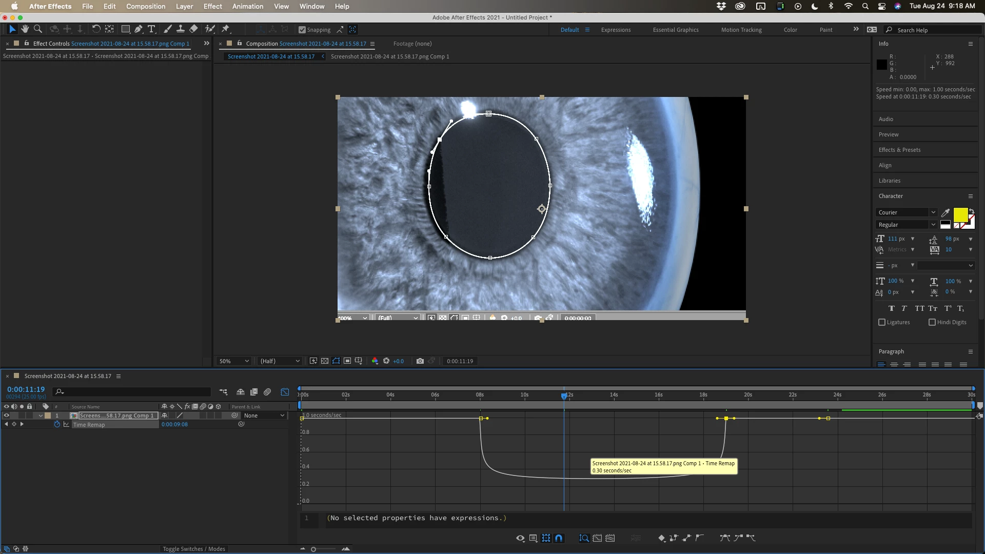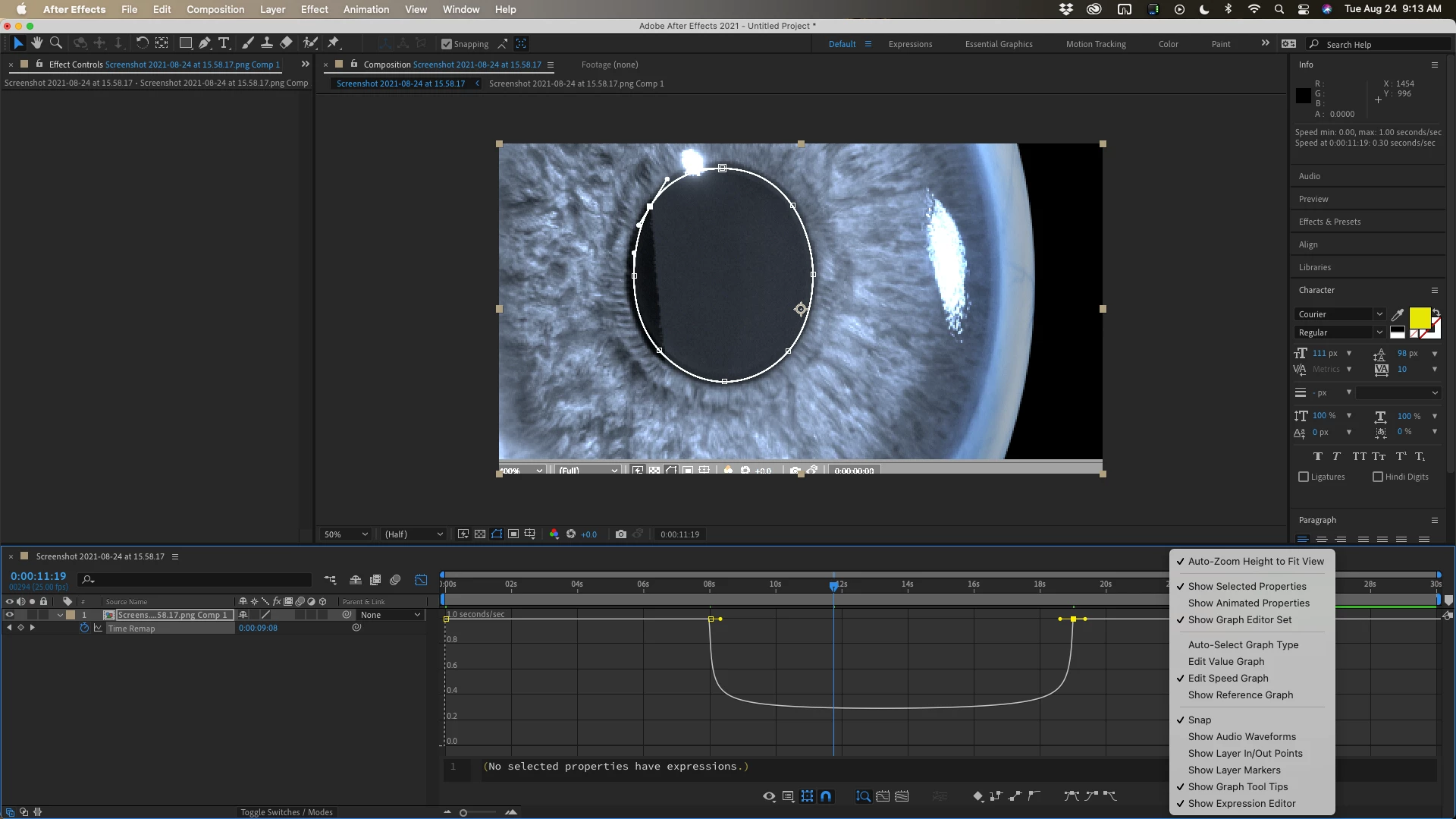 Hello, Im making an edit on After Effects 2020, I wanted to slow down a certain small section of my footage (2-3 seconds) and then have it speed up. I understand what graph editor is and how it works but when ever i enable time remapping and set my keyframes at the start of the 2 second clip and put it at the end and delete the leftover ones. I go to graph editor and look at the graph and its so astronomically small. My cursor cant even reach it. Its not a software problem its just like such a small percentage. that if i do move the graph around it makes no difference.
