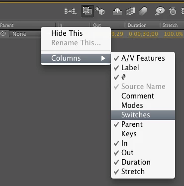 you either have both Switches/Modes shown or neither. Enable/disable them with the icons in the bottom left of your timeline, first 2 are for Switches/Modes