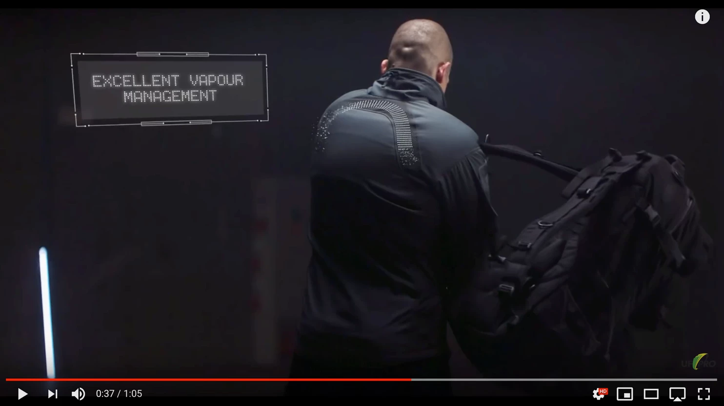 The shot where the actor throws on his backpack