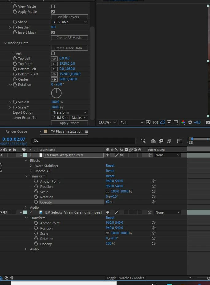 I am attempting to insert a video in a tv screen. I have to scale down the video in order to fit inside the tv screen but the Mocha tracking data does not work with scaled down / resized & rotated video. Since Mocah AE is unable to track resized video will Mocha Pro do the job? If not, can anyone recomend a plug in or app that will track resized video layers.