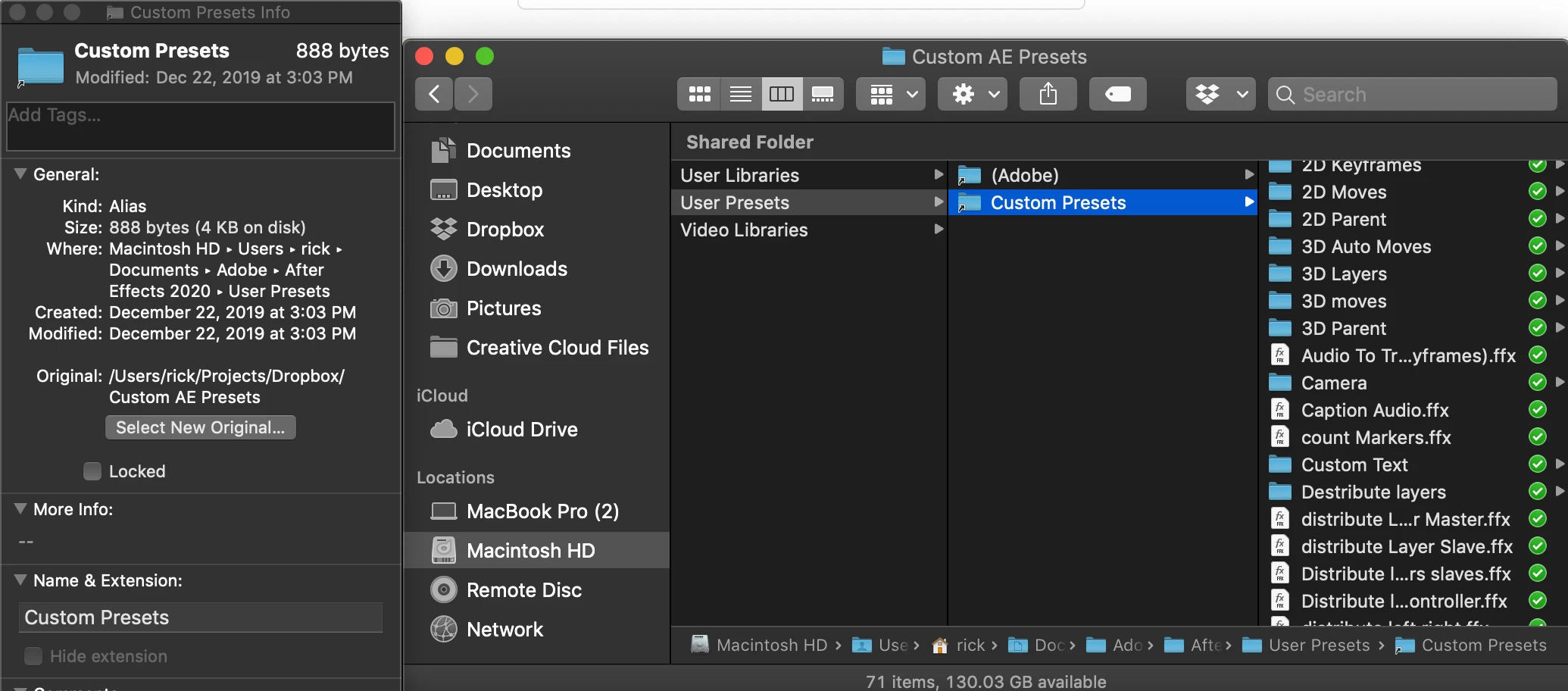 Running the latest version of AE on Mac. Is there a way to transfer my workspace and scripts over to my laptop? I tried simply ⌘C+V the entire Scripts/Script UI Panels over but that was unsuccessful.