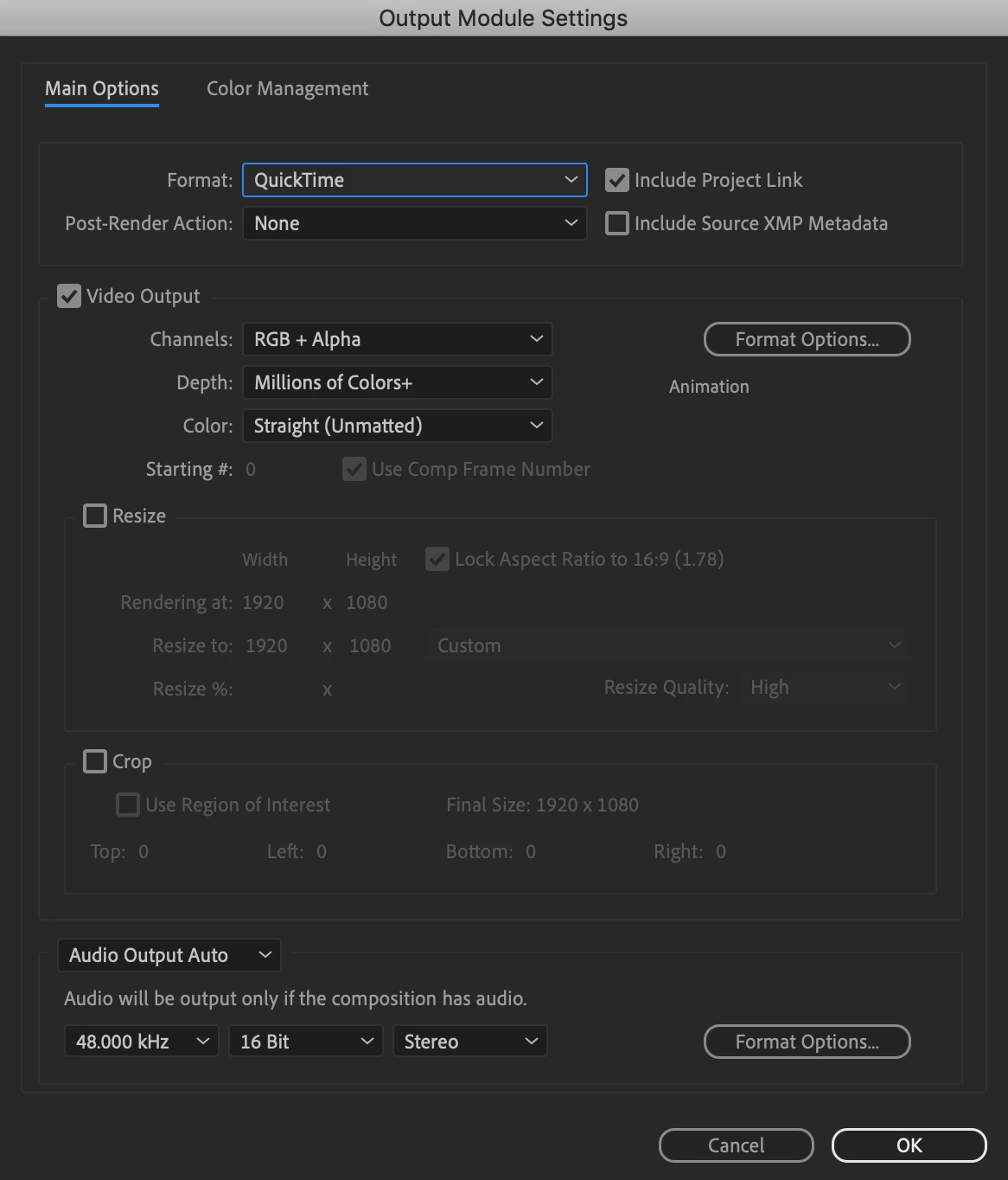 Help!! I am trying to export a handwritten font on a transparent background to use in Final cut however everytime I export it there is a black background. I've watched several Youtube videos and nothing seems to work. The Output Module is set to Lossless Alpha. Why is it still exporting with a black background?