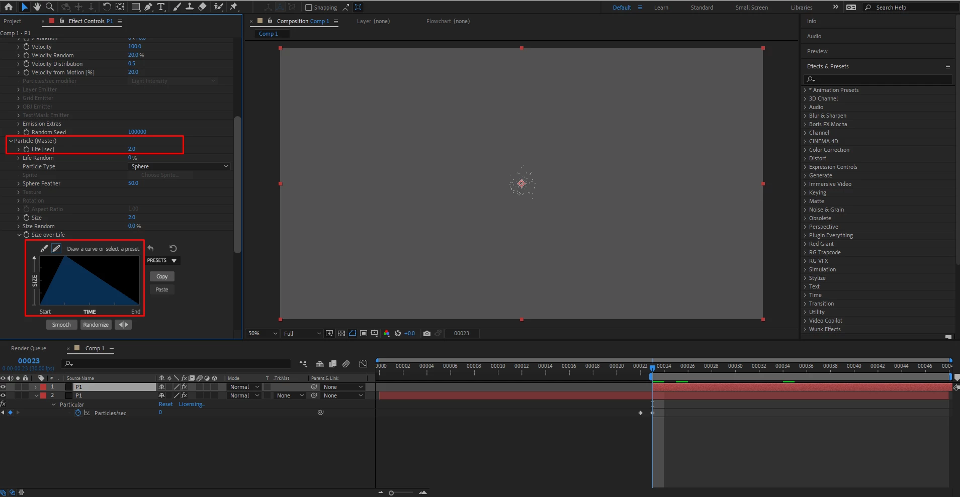Trapcode particles conversions seconds to frames