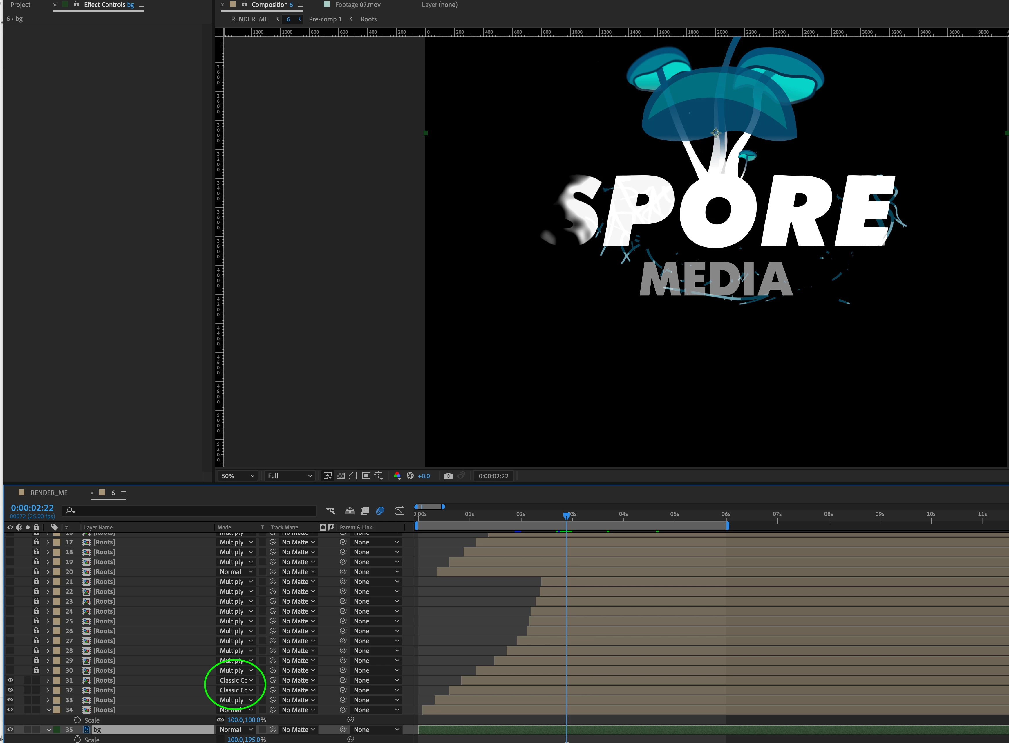 I've produced a short ident for a company which invloves blending modes over a black background. Annoyingly theyre now asking for a version with an alpha channel - to which I'm going to struggle as the 'transparency' is effectively baked in as a blending mode. The growing roots is essentially just an auto filled vector which repeats 4 times getting darker as as to look as though its disappearing. If I remove the bg layer (as you should be able to see) of course I lose the transparency effect from loss of blending mode. Any tips on how to get around this? I imagine trying to remove the black in the final rendered video would look awful.