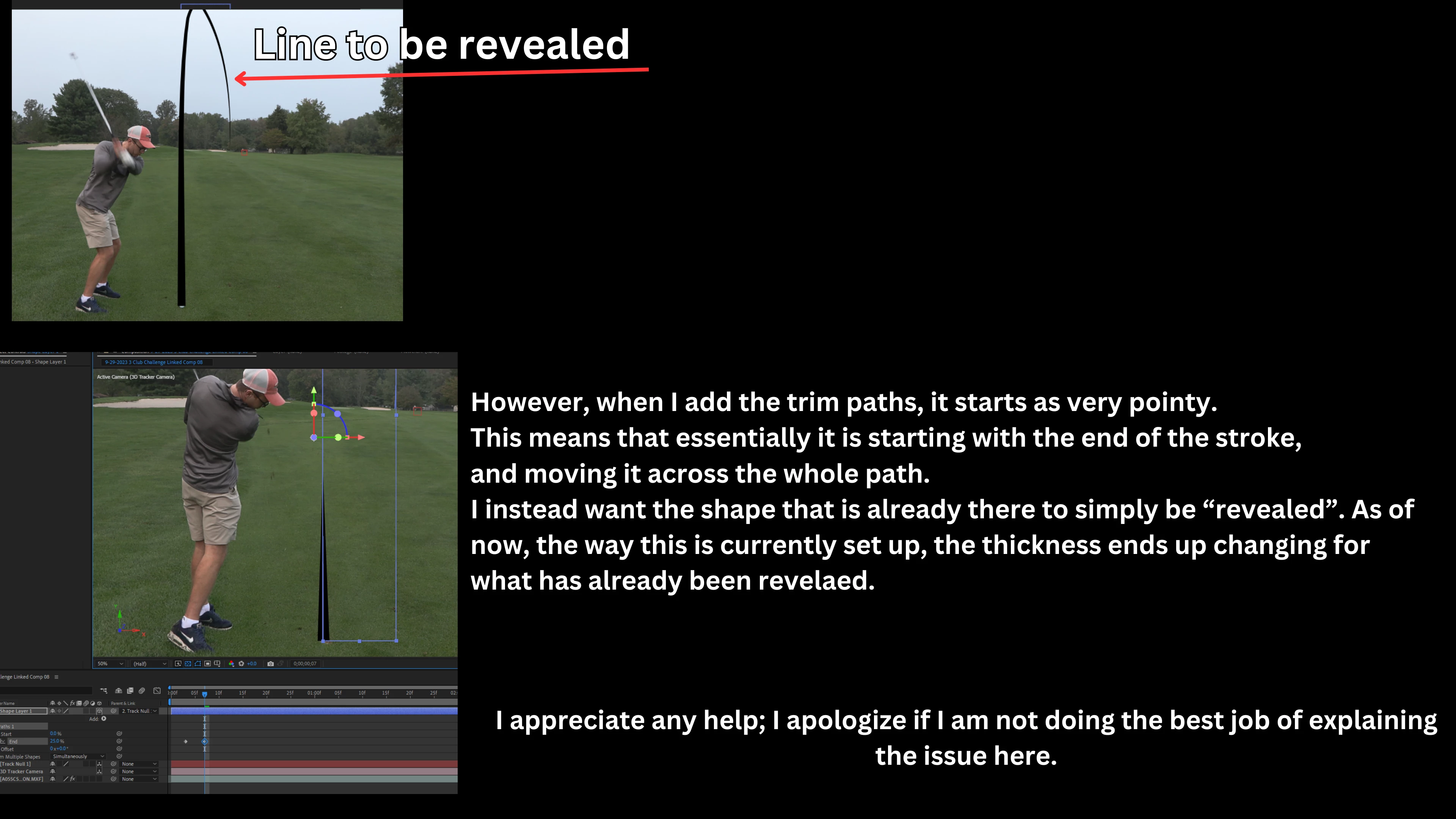 However, when I apply Trim Paths to the line, it isn't just "revealing" the shape that is already there. It is actually changing in thickness a bit once it has already been created. It is a little bit hard to explain, so I will attach a screenshot.