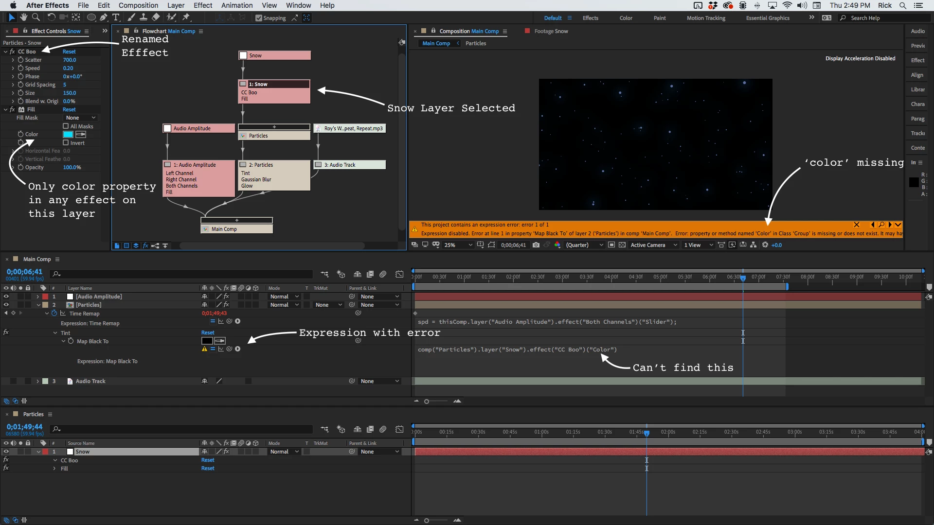 Disabled expression: Error in line 1 in the "Color" property of layer 2 in composition X. The property or method called "Color" in the "Effect" Class is missing or does not exist. It may have been renamed, moved, or deleted.