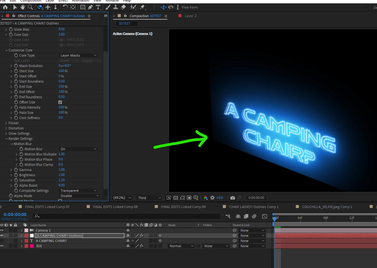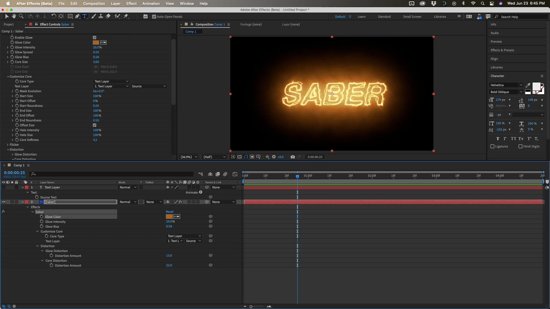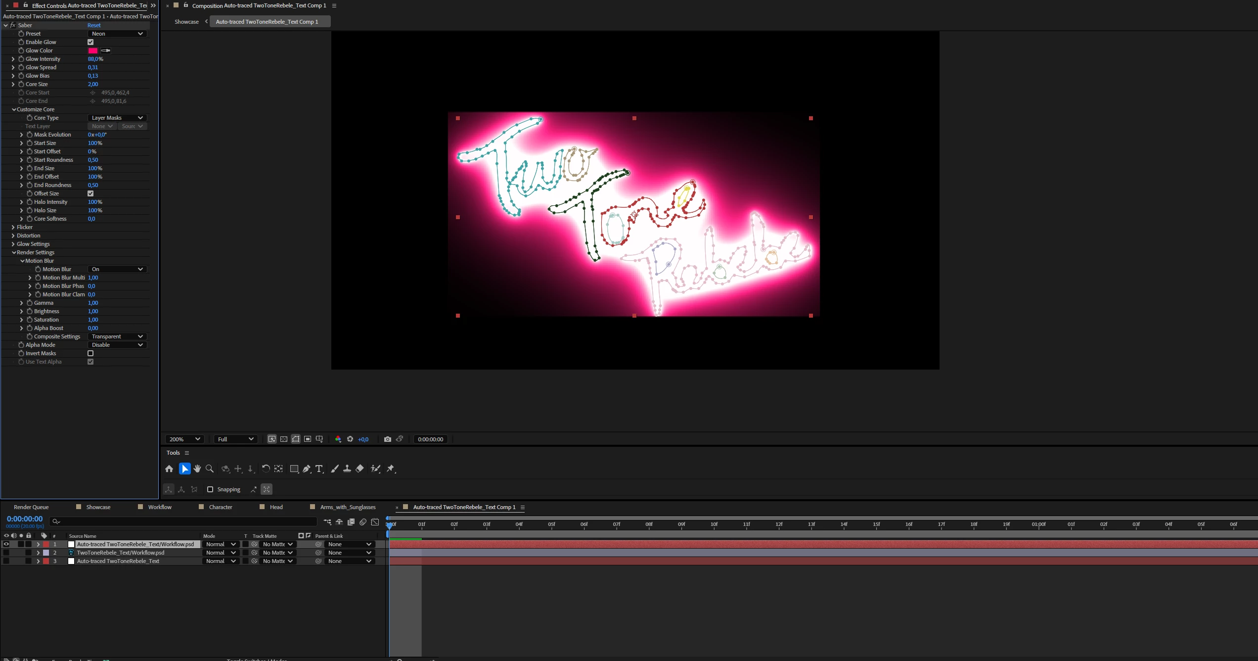 I am having troubles with saber, whenever I try to use it for text there is a hard line on the edge. Not sure if I am missing something. I just bought Element 3D, followed a couple of tutorials and I cannot make it work because of the harsh lines I always get around texts. I have tried pre-composing, and creating layer masks from text and still the same. I am trying to achieve what is on the image with the Motion text.