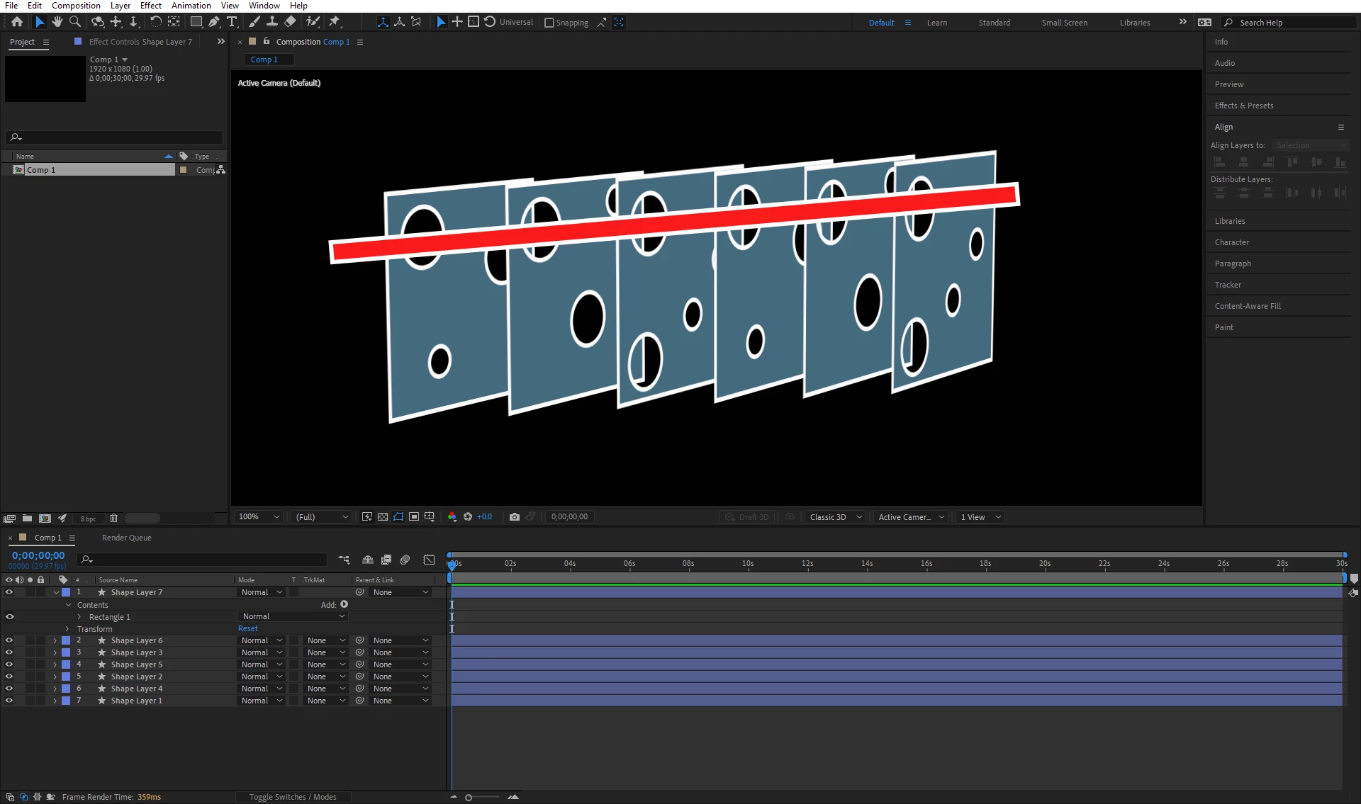 I'm trying to build an animated infographic that has a line pass through some swiss cheese blocks. I got the shapes designed but I cant figure out how to path the line through the circles. See the image below.