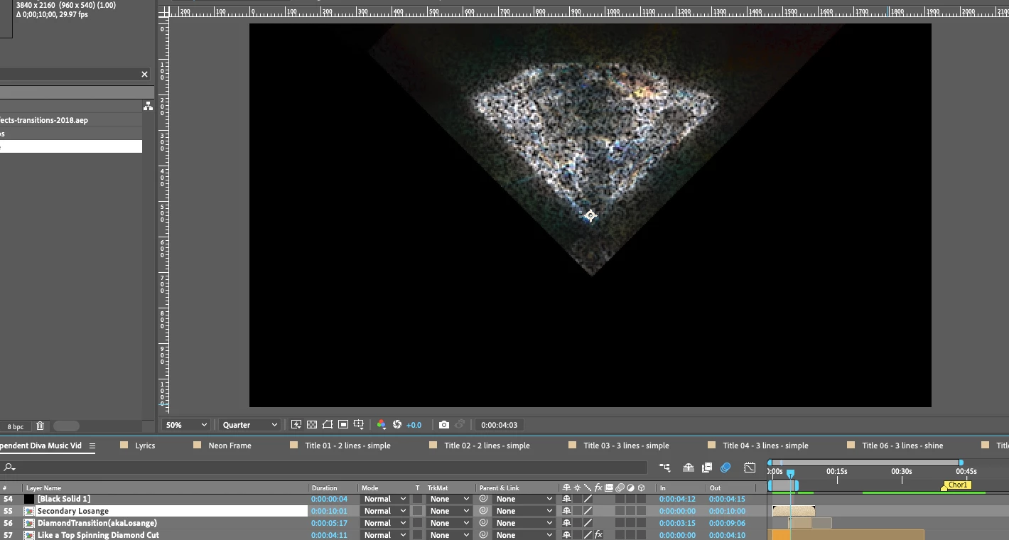 Scenario: I Have a Lower Layer of this Black/With Open V already set. I imported another of the same Black/with Open V, but I am unsure how to make it slowly drift up, closer to the Diamond edges as the diamond disolves.