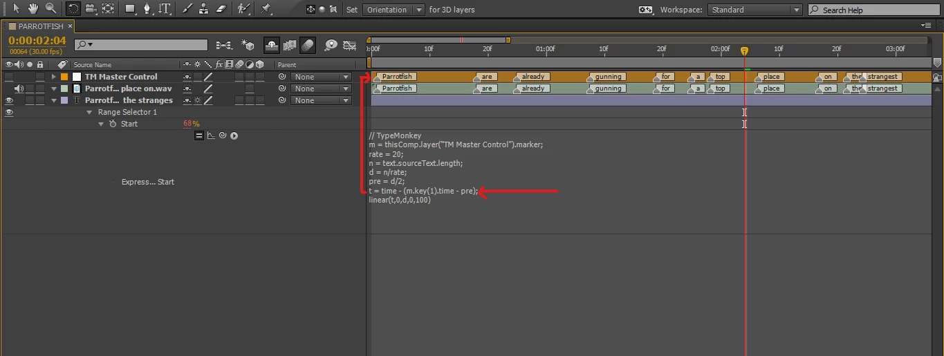 Since I last posted sync voice-over to text , I have been doing a little dgging with the TYPEMONKEY. I found what I wanted but I am not good with expressions.