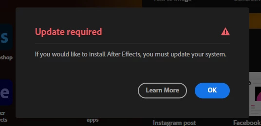 i am trying to redownload premiere pro and after effects 2024 but it comes up with my pc needs an update or it is not compatable with my pc, i could use all these softwares perfectly fine before i updated to windows 11 and deleted some files. now i cant download the software, i use my university accound and i need to get work done asap but i cant as i can not download it, any help would be appreciated