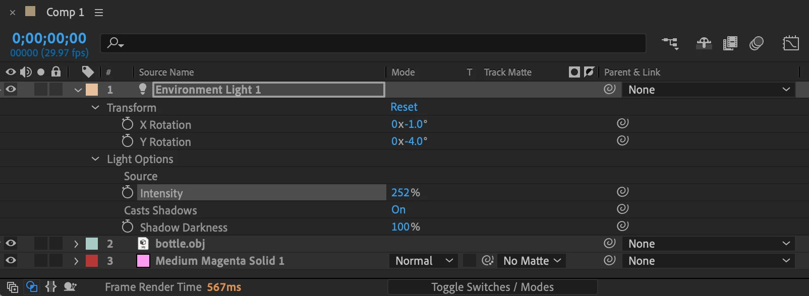 Unable to edit 3D lighting source