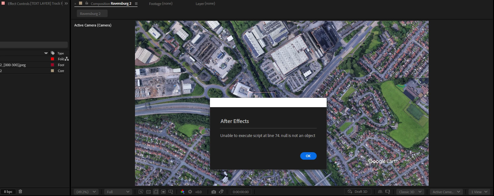 I am strugging to import my KML files from Google Earth pro into After Effects. I am unsure if the error message is from the KML import script or with the KML script itself. Or something else completley.