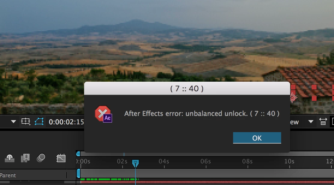 "After Effects error : unbalanced unlock. ( 7 :: 40 )