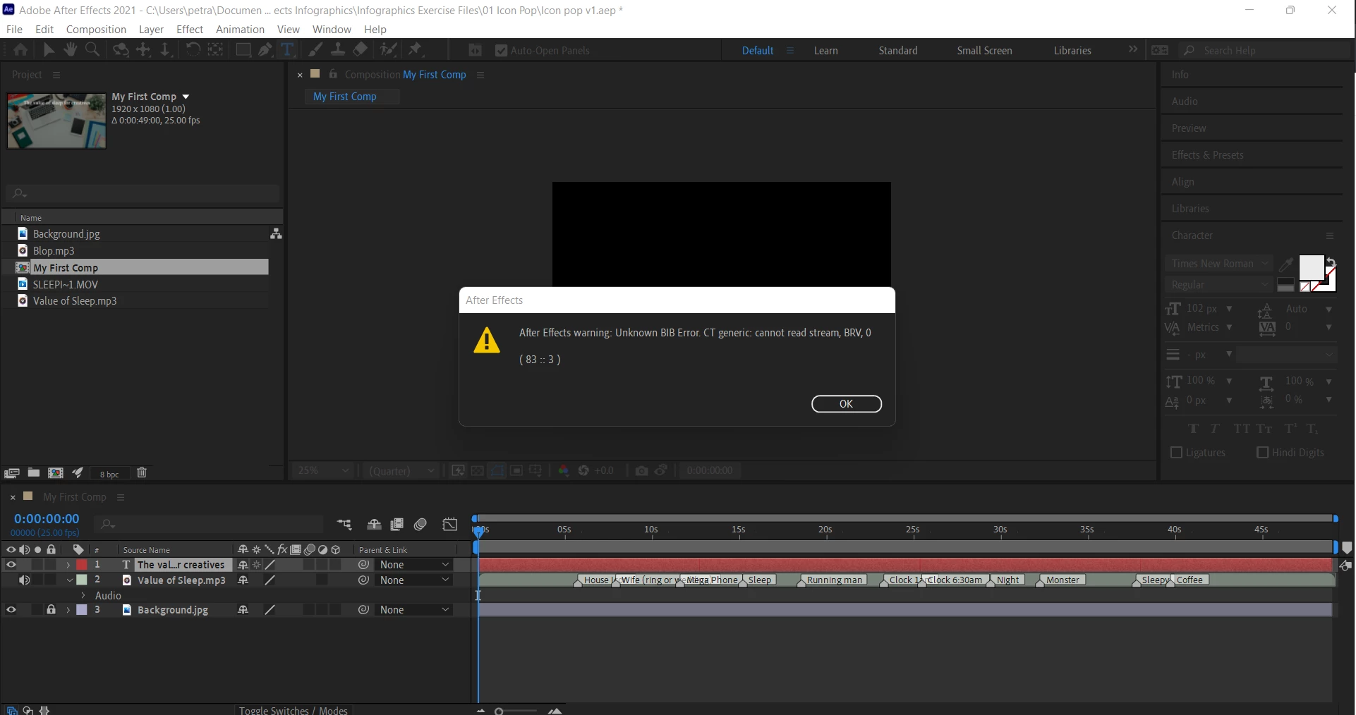 I have a error that reads as shown in the image when I try to change the font in a text box. I use premiere pro all the time and I'm learning After effects for the first time, Please dont attack me if its blinding obvious haha.