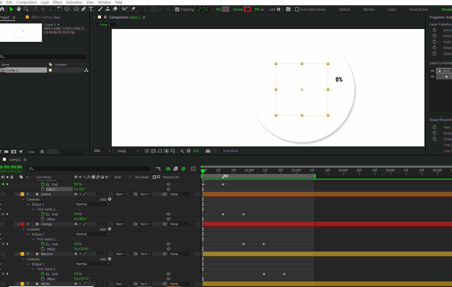 6. Trim Paths should be below Ellipse 1/Ellipse 1 Path, spin down to reveal the End property, and set your first pie percentage