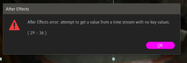 I am currently getting an error message in After Effects that appears as soon as the ok button is pressed. I am working under a deadline which is coming up soon and I forgot to save my project. This means that if I force quit I will lose my work and if I can't make the window go away I won't be able to finish for my deadline in time. Thank you!