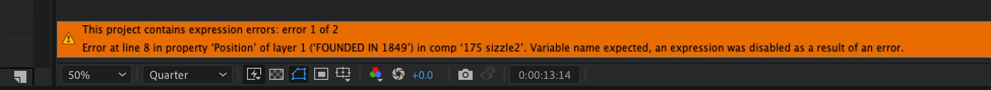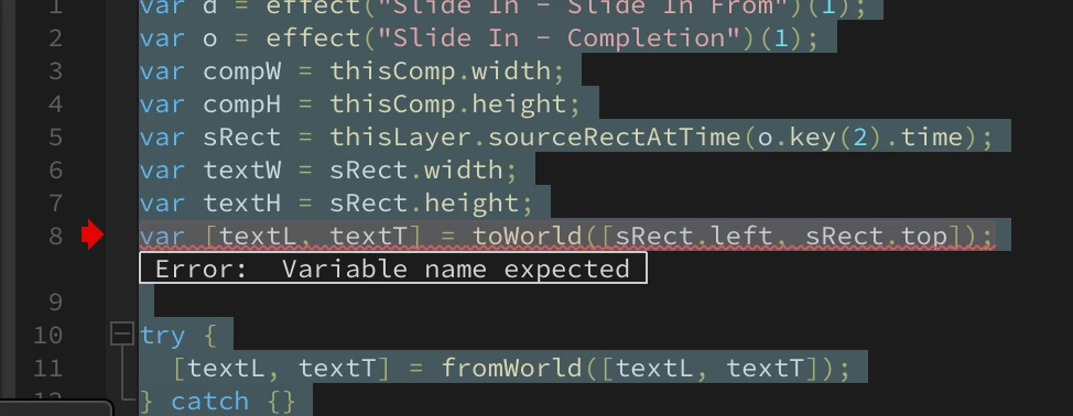 I added Slide in From Comp Edge to my text from the Animate In presets, and I get this error:
