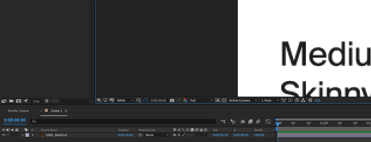 The after effects document is set to the same pixel size.