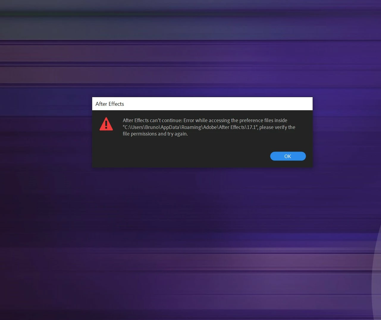 I have a problem with After effects. This is a message in picture.