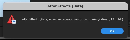 Version 23.6 - After Effects Error: zero denominator in ratio multiply. ( 17 :: 18 ) - spacebar prev