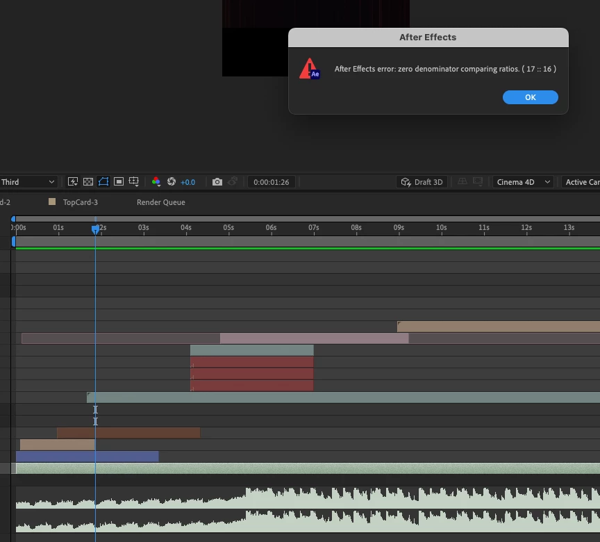 After Effects Error: zero denominator in ratio multiply. ( 17 :: 18 )