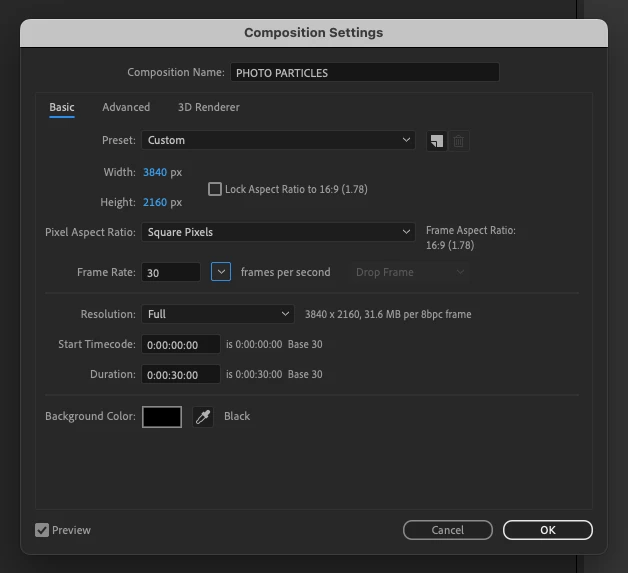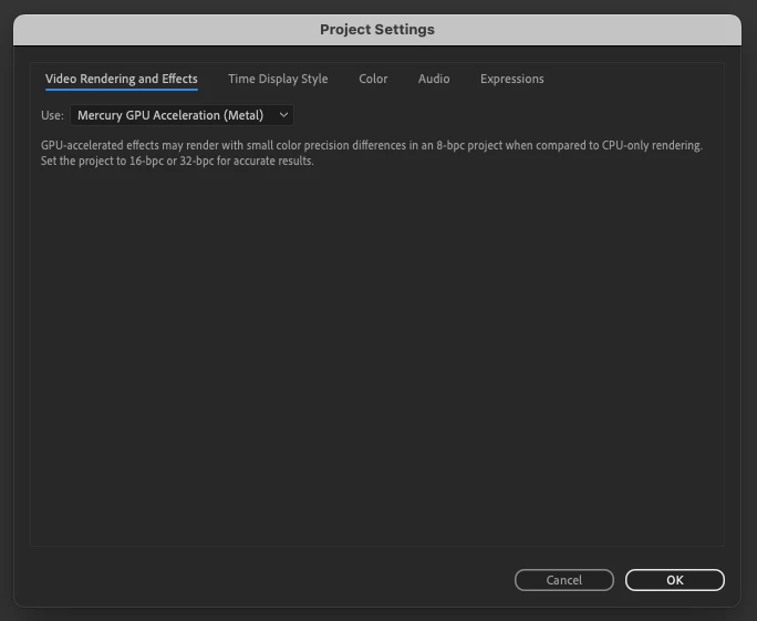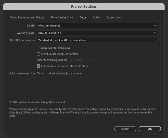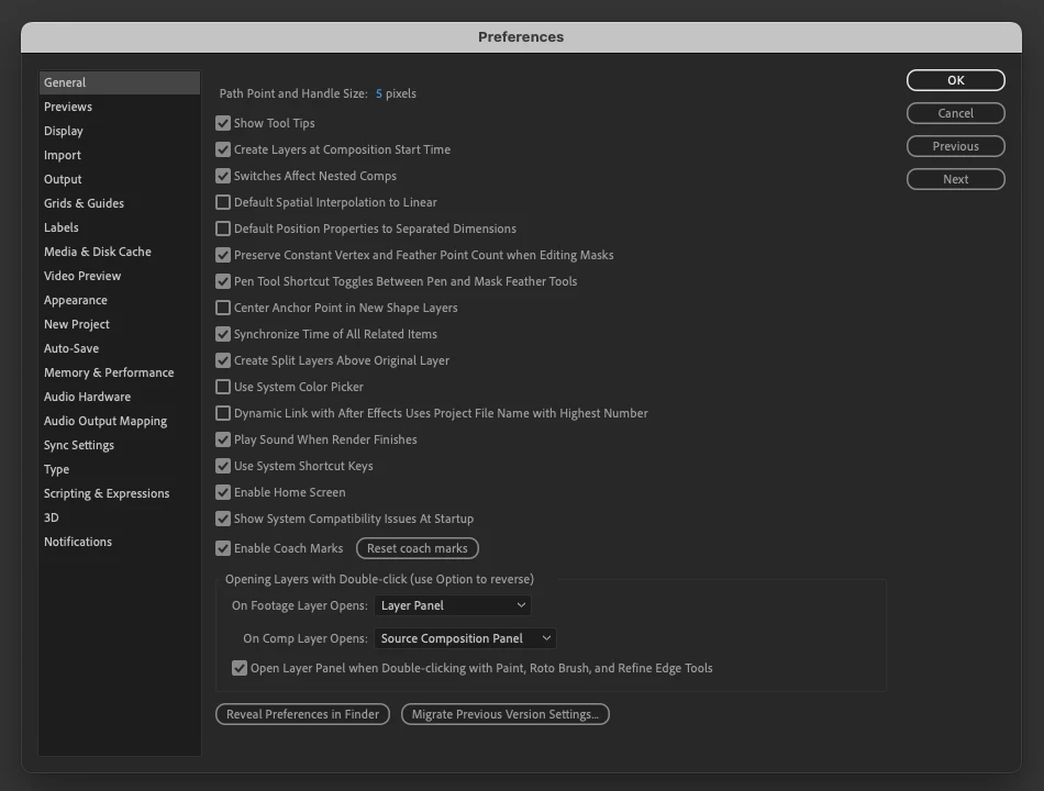 Also, attached screengrabs of my existing Preferences/Project/Composition Settings. Hoping that helps.