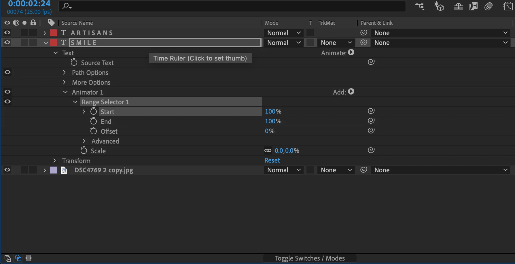 Hello everyone, super new to AE. Just started today and i am working on tutorials but my motions are not working. I see a swril icon below all the categories of "Parent Link" and I dont see this on others screens. Is there somethign here that is keeping me from acheiveing the animations of texts and how do i remove these swirl icons? Thanks