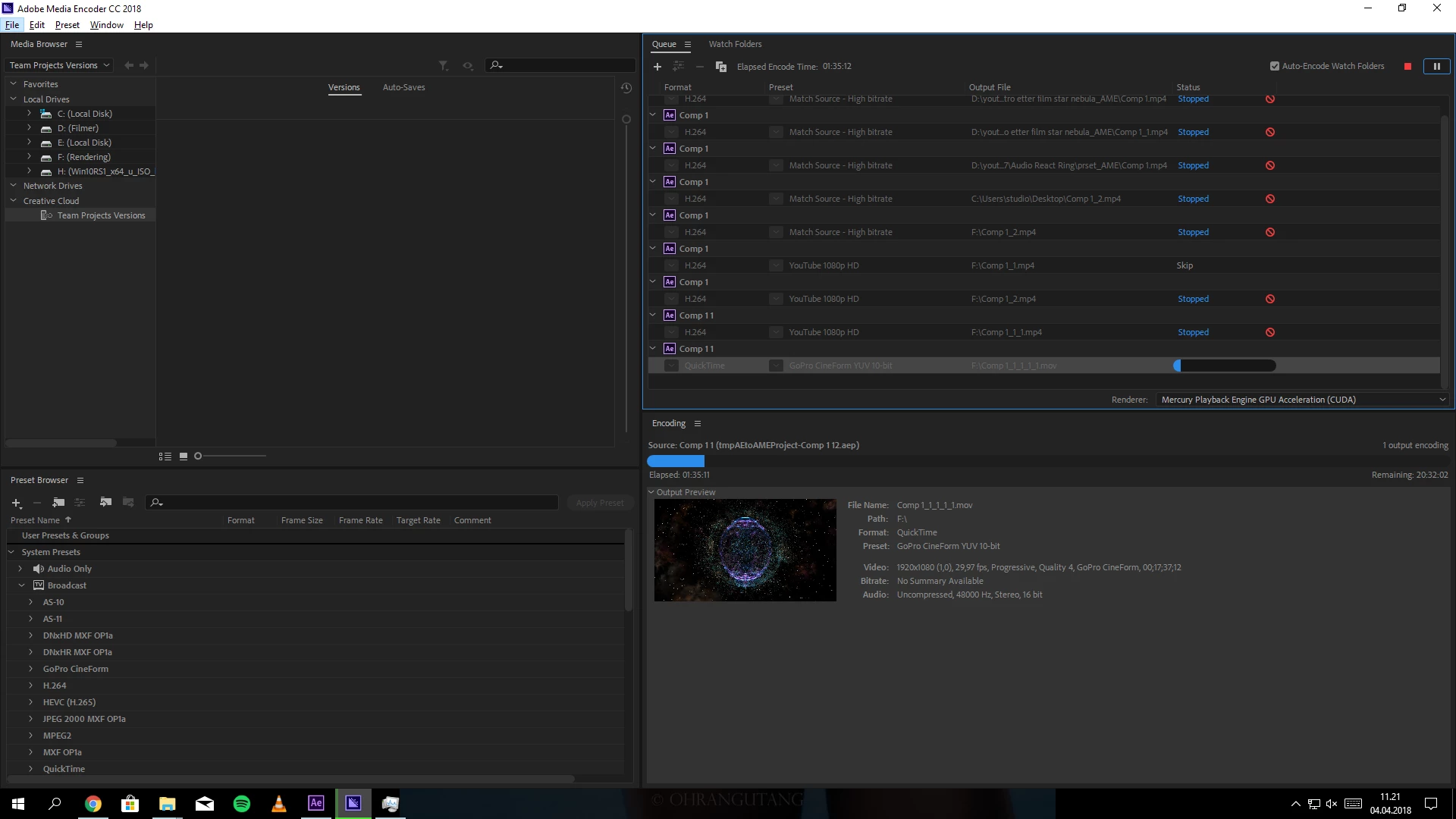 I am rendering to the "OCZ Agility 3 120GB" and tried to change from .AVI to .QT